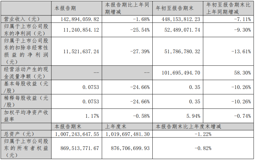 10月29日,聚杰微纤(300819.SZ)发布2025年三季度报告,该公司前三季度营业收入为4.48亿元,同比减少7.11%。