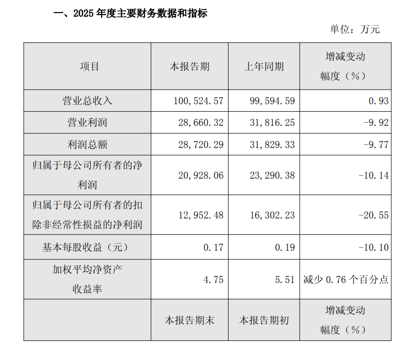 2月10日,有研硅(688432.SH)披露2025年度业绩快报,2025年度,公司实现营业总收入10.05亿元,同比上升0.93%;实现归属于母公司所有者的净利润2.09亿元,同比下降10.14%。